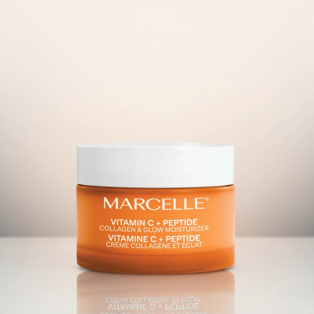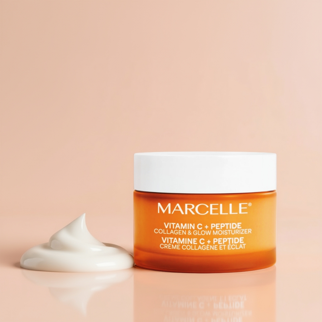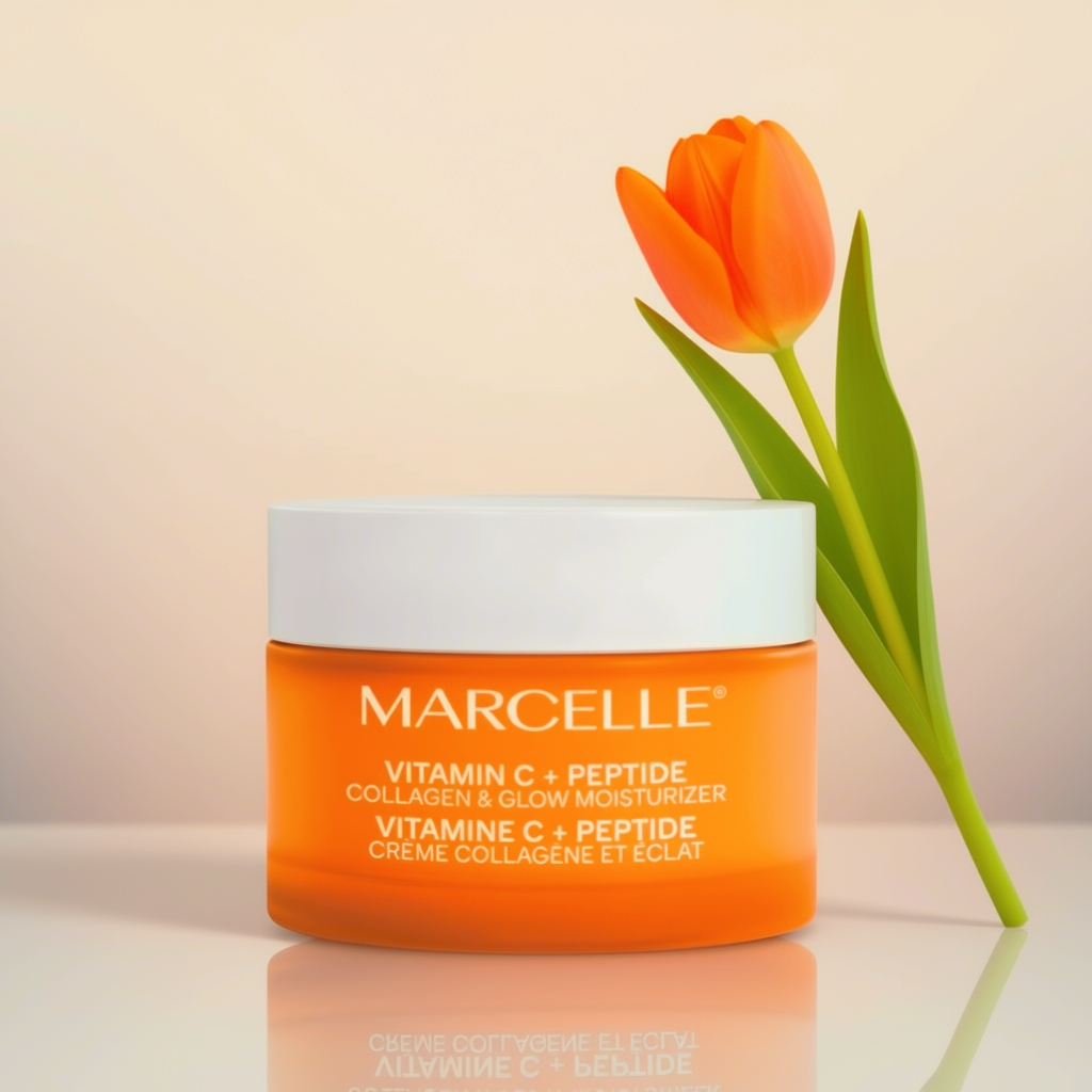 - فرمولاسیون کرم Vitamin C + Peptide Collagen & Glow Moisturizer از برند Marcelle ترکیبی علمی و مؤثر از مواد فعال و مغذی است که برای افزایش درخشندگی، استحکام و رطوبت پوست طراحی شده. در ادامه، ترکیبات کلیدی و عملکرد هر کدام را بررسی میکنیم: