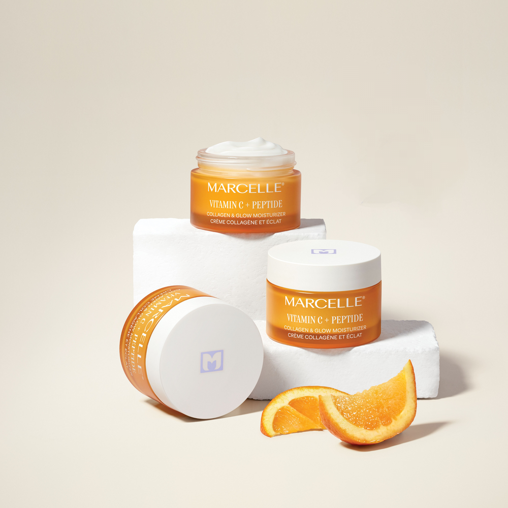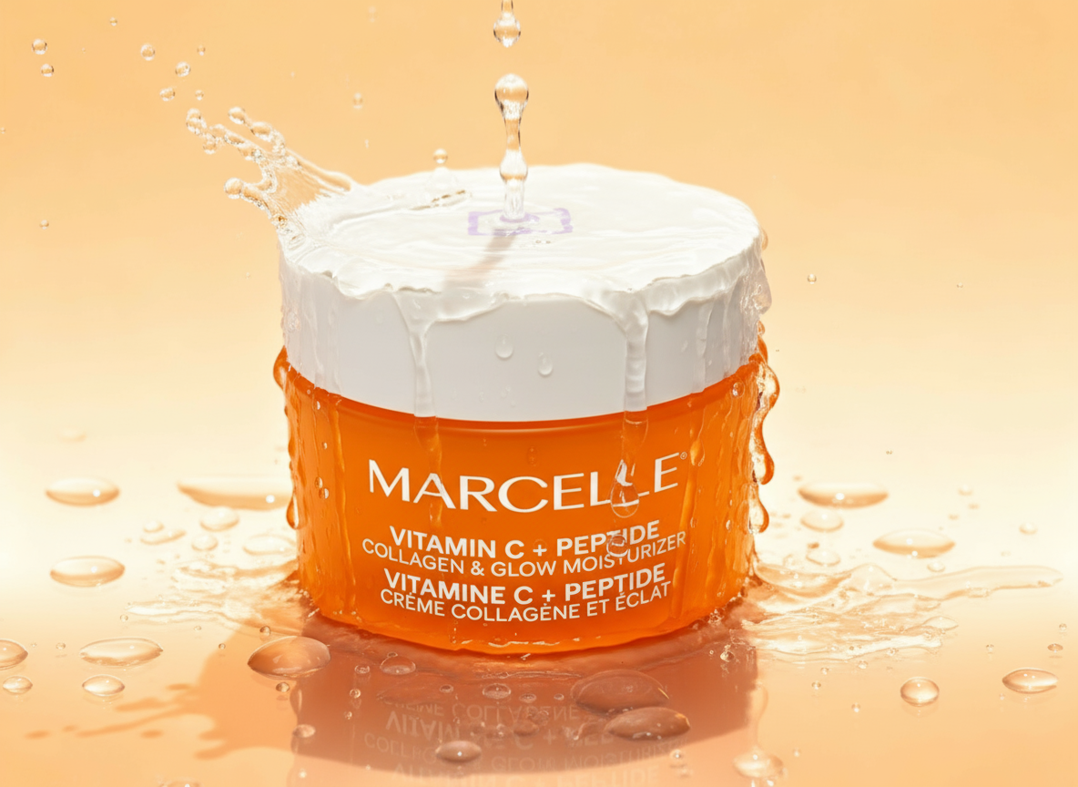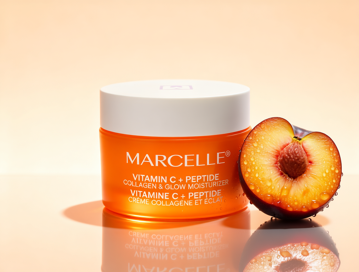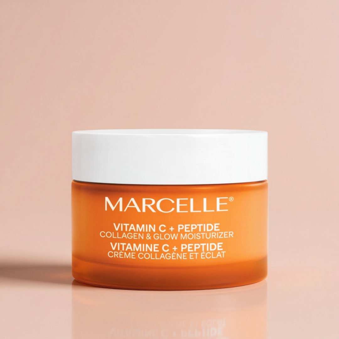 - فرمولاسیون کرم Vitamin C + Peptide Collagen & Glow Moisturizer از برند Marcelle ترکیبی علمی و مؤثر از مواد فعال و مغذی است که برای افزایش درخشندگی، استحکام و رطوبت پوست طراحی شده. در ادامه، ترکیبات کلیدی و عملکرد هر کدام را بررسی میکنیم: